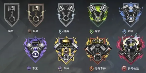 1、游戏中共有9个排位等级,从无名、新星、精英、专家、大师、车王、车神、传奇车神到头号公敌。