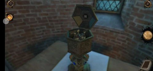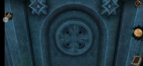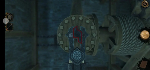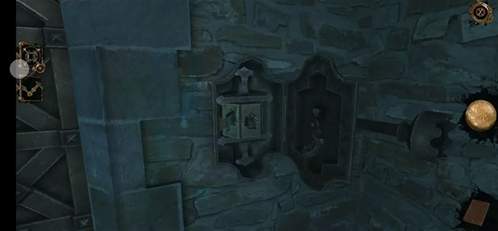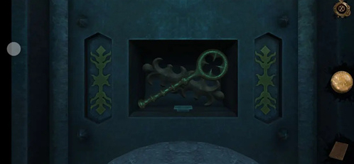 来到右侧机关处,打开永恒之眼,对应孔的图案转动两边的天使形旋钮,点击得到压花圆盘