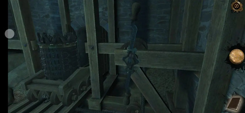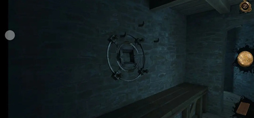 进入密室后,点击得到墙上的带把金属环轮
