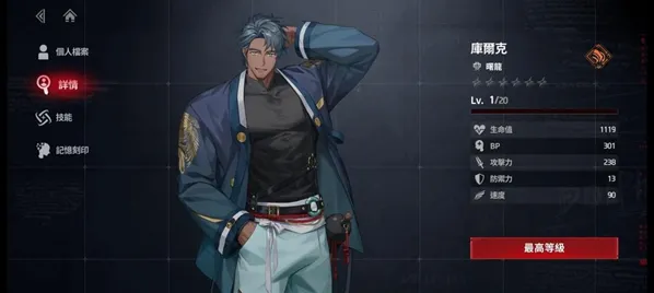 必抽,减益类角色,第二档的白值,普通的倍率,技能是相当难以触发的弹反,晕眩也只有20%,那为什么必抽,不抽卡四个人都凑不到要怎么玩游戏,相信后期控制角色会突出他们的能力的。有时技能会让敌方减防目前还没找到原因。