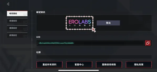 刷到喜欢的角色之后记得回到环境设定一账号绑定EROLABS绑定账号,以免游戏更新时遗失账号