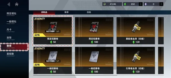 商店消耗50绿色莱普晶买每日限定招募卷