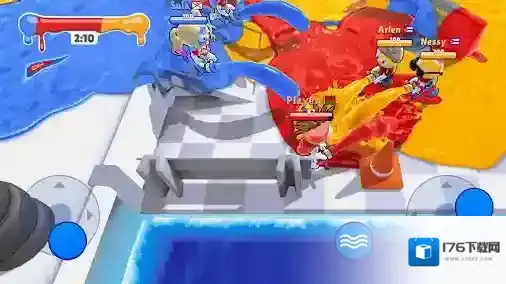 2、遭遇对手后即可用颜料攻击对手,并将区域染成你的颜色。