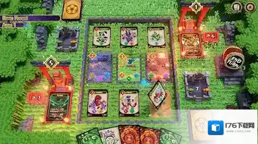 1、丰富卡牌可以自由构建卡组,不同的英雄角色等你去选择使用。