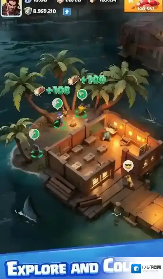 3、有各种海怪需要小心躲避,非常多凶猛的鲨鱼怪物需要你去消灭来保护避难所的安全。