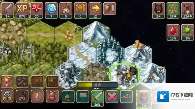 4、当地块上有魔物存在是玩家需要击败魔物才可以获得奖励,点击带有剑的按钮来讨伐魔物。