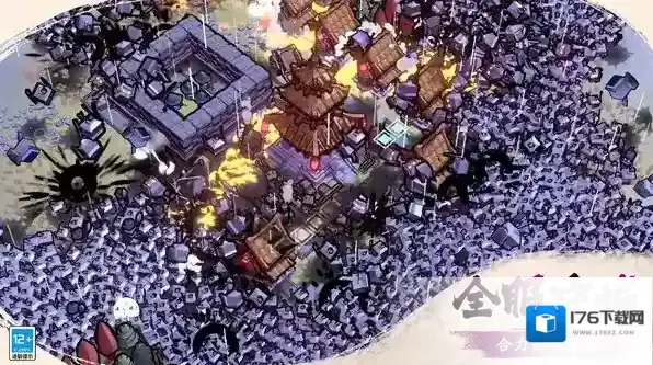 1、采用数字水墨绘画技术,还原传统山水画 勾、皴、点、染 的笔墨技法,城池楼宇、山水林木、士兵敌军均以水墨笔触呈现,搭配散点透视的场景设计,营造出 如入古画 的沉浸式视觉体验。墨水方块造型的敌军设计兼具趣味与国风辨识度,爆笑方言配音点缀其中,让严肃的守城题材更添 幽墨 韵味,风格自成一派。