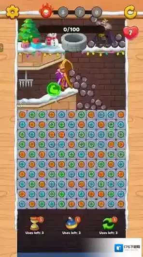 4、当玩家消除方块后上方的石头或者其他物品会下落,在规定时间内达到一定数量就可以通关。