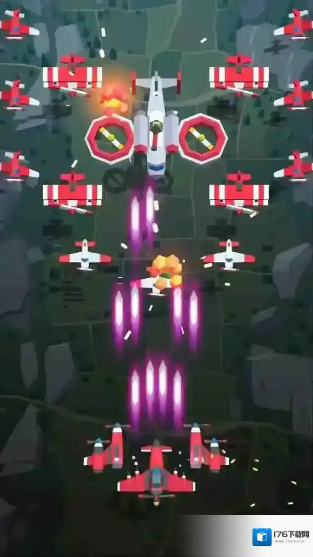 4、消灭敌人后会掉落金币,有些敌人则会掉落强化道具,金币可以用来升级你的战机和解锁新的战机。
