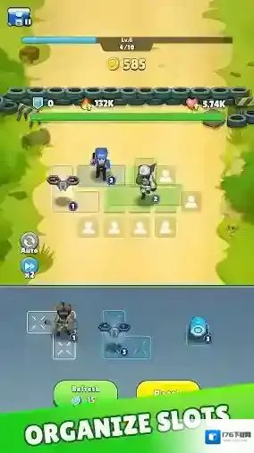 2、收集和升级独特的英雄,打造你的终极小队,并合并士兵以打造更强大、更高效的单位。
