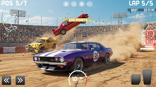 采用先进的物理碰撞引擎,每一辆车都会根据撞击角度和速度产生真实变形。从侧面撞击会导致车门凹陷,正面硬刚会让车头溃缩,高速侧撞可能直接让对手翻车。