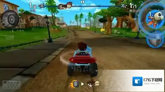 4、合理使用道具来阻止对手前进,超越一个个对手率先抵达终点就可以赢得胜利。