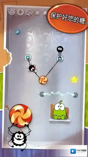 3、游戏中还有着各式各样的糖果、绳子皮肤,玩家可以通过闯关来一一解锁,让闯关的过程显得更加的有趣。