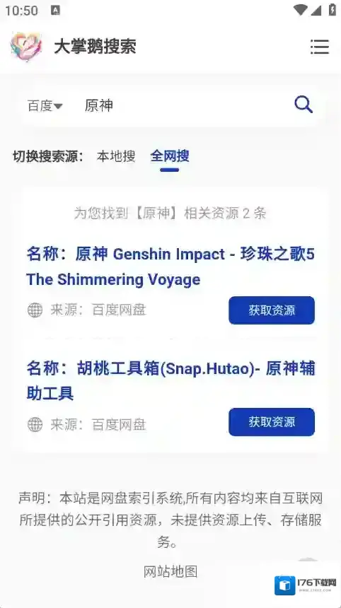 大掌鹅搜索,强大的资源搜索神器,不管是搜索小说、影视以及漫画等资源类型,支持夸克、百度等多种网盘类型,所有的资源都是免费的,资源搜索速度快且资源齐全,快速找到自己需要的资源内容。