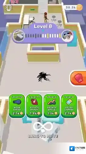 1、进入游戏,拖动屏幕即可控制毒液移动,靠近猎物之后就可以将其吞噬。