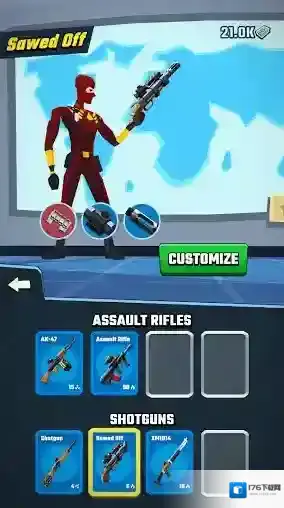 1、通过闯关或者开启幸运盒我们能够获得各种武器和改装部件。