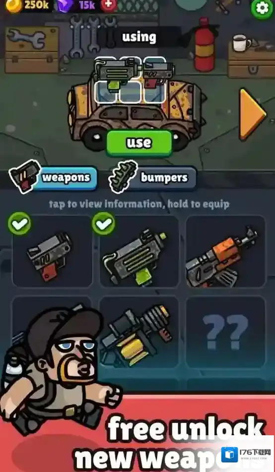 3、消耗金币可以升级你的车辆,可以提升武器威力或者增加血量。